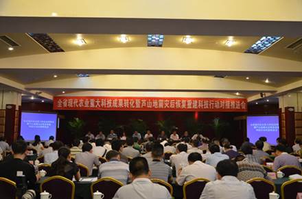2013年8月5日上午,全省現代農業(yè)重大科技成果轉化暨蘆山地震災后恢復重建科技行動(dòng)對接推進(jìn)會(huì )在雅安市紅珠賓館隆重舉行。會(huì )議由省科技廳和雅安市政府共同舉辦,省委常委、省委農工委主任李昌平出席會(huì )議并發(fā)表重要講話(huà)。省委農工委、省科技廳、省農業(yè)廳、省水利廳、省林業(yè)廳、省畜牧食品局、省糧食局等部門(mén)和雅安市有關(guān)負責人等100余人出席會(huì )議。會(huì )上,省委李昌平常委為四川科創(chuàng )飼料產(chǎn)業(yè)技術(shù)研究院授了牌。